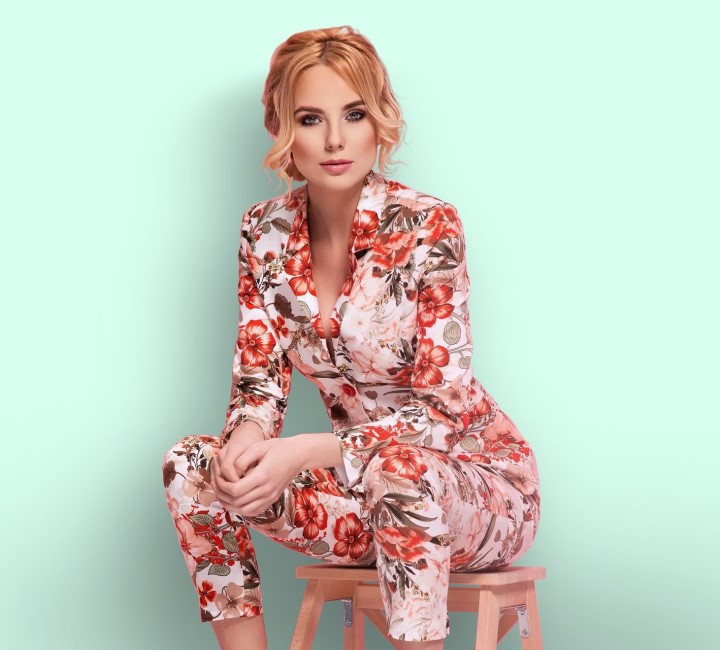 Kadın uzun kollu v yakalı pulpayetli viskon iki iplik bluz ve pantolon