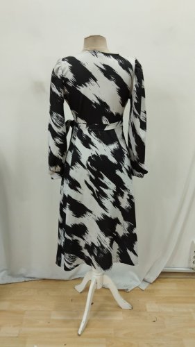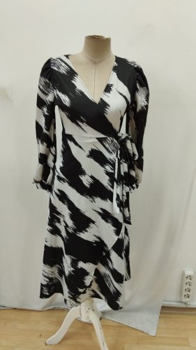 • Kadın uzun kollu kruvaze yakalı yandan bağlamalı desenli mini modal elbise