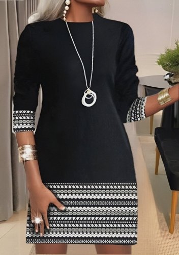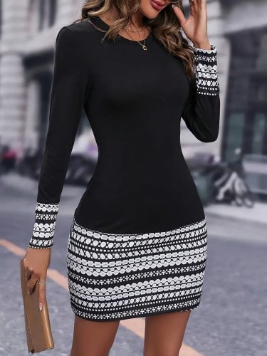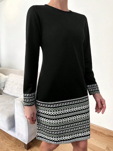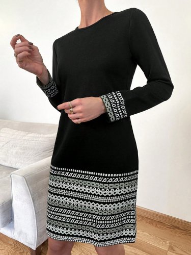 • Kadın uzun kollu bisiklet yaka kol ağzı ve etek ucu baskılı iki iplik elbise