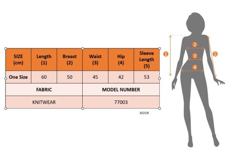 • Modelin Ölçüleri: Boy:165, Kilo:55, Göğüs:90, Bel:72, Kalça: 100