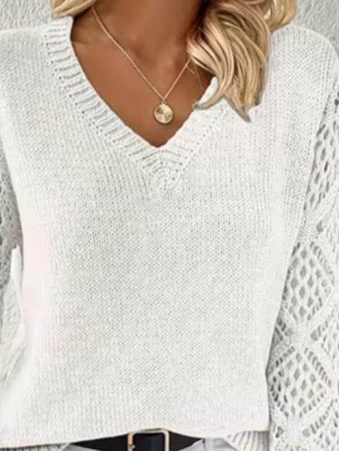 Kadın uzun kollu v yaka kol delikli baklava desen detaylı triko kazak