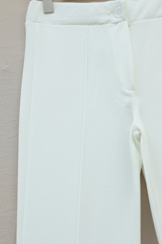 Düğmeli Beli Lastikli Likralı Palazzo Pantolon Ekru