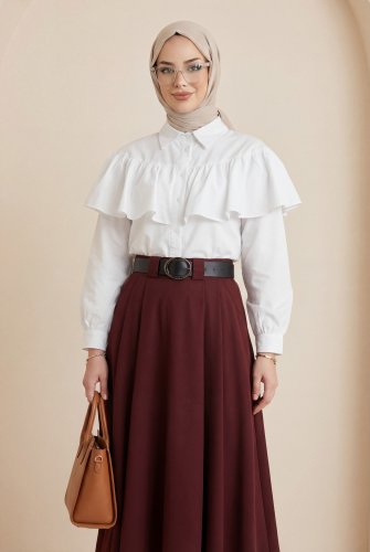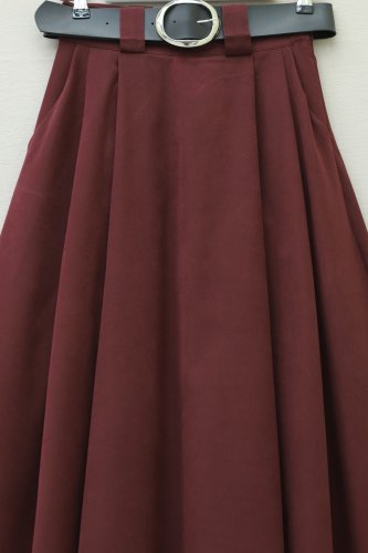 • Kalın Kemerli Önü Pileli Yan Cepli Fermuarlı Tivil Etek Bordo